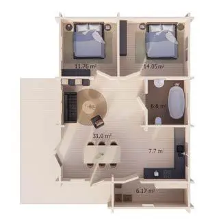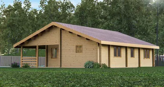 Casa de madera NILE 92,8 m2 Ref. casas 95 NILE 92,8 m2 (sin terraza) 7 ventanas, 6 puertas incluidas Espesor de pared mínimo recomendado: 68 mm Dimensiones: 10.2 x 11.2 m Altura total: 4402 mm Altura de la pared: 2430 mm Tamaño de la terraza: 22.2 m2